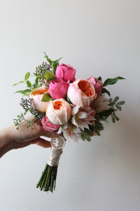 D75 카라+연핑크 장미 믹스 부케